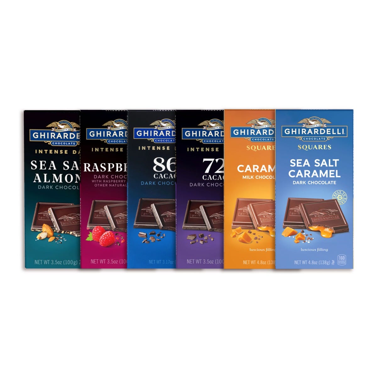 Break off a Square and experience the velvety smooth, rich flavors of Ghirardelli chocolate. The Ghirardelli Best Sellers Bar Bundle contains an assortment of 12 bars, 2 of each best selling flavor: