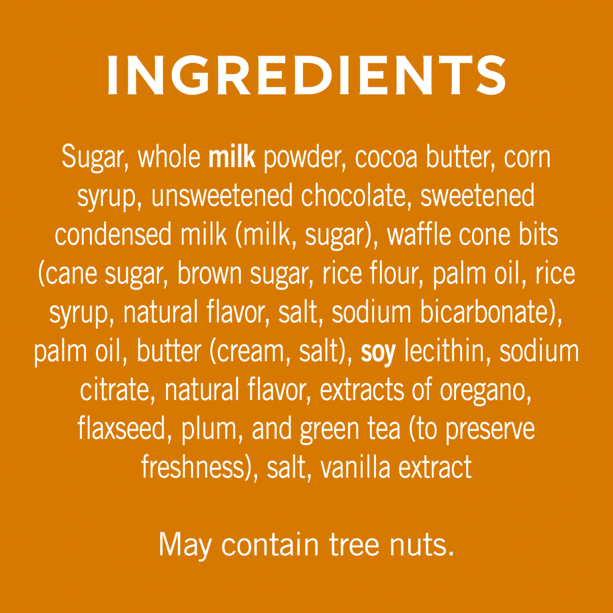 Luscious caramel filling surrounded by rich milk chocolate with crunchy waffle cone pieces